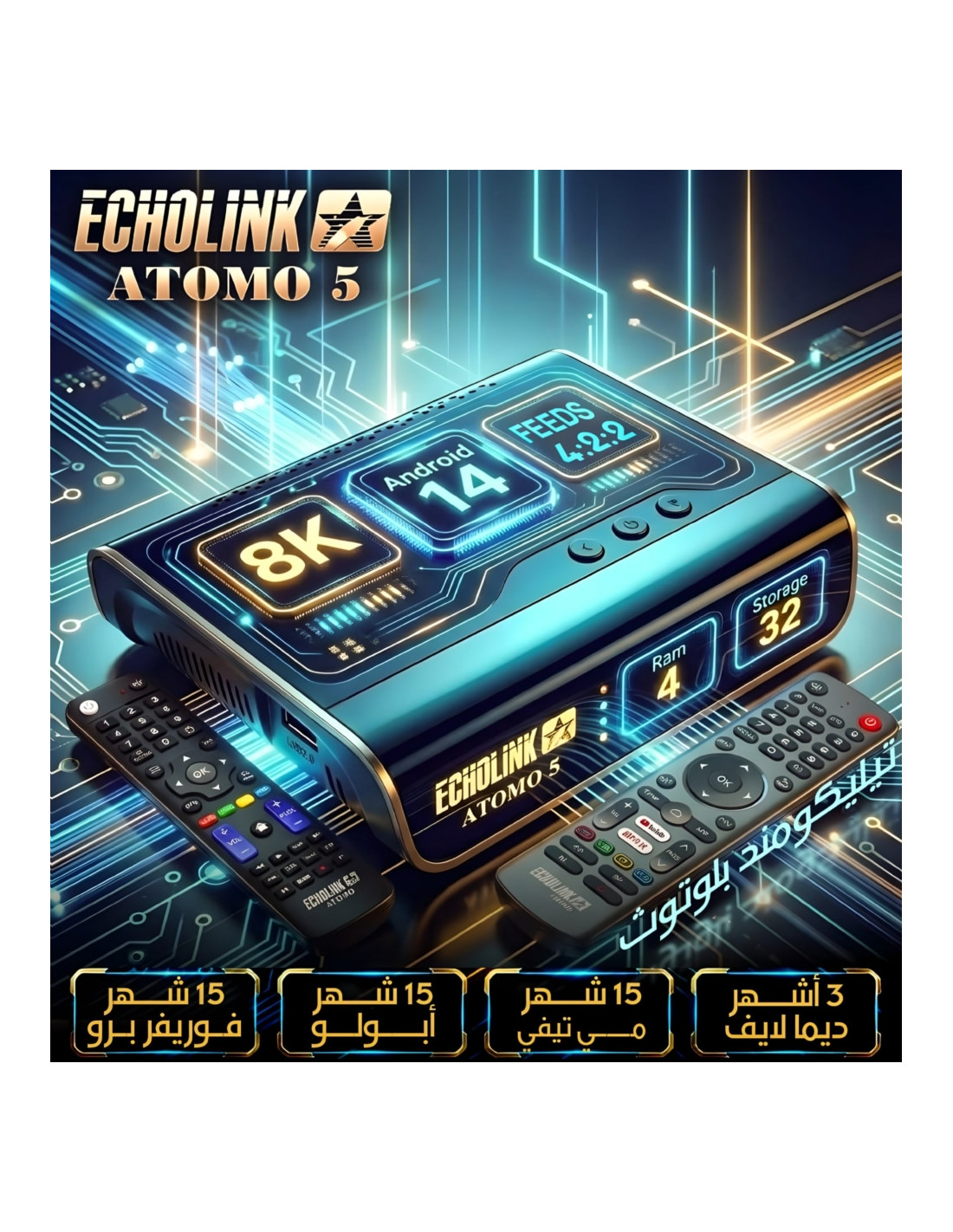 Echolink atomo 5 4k avec android 14